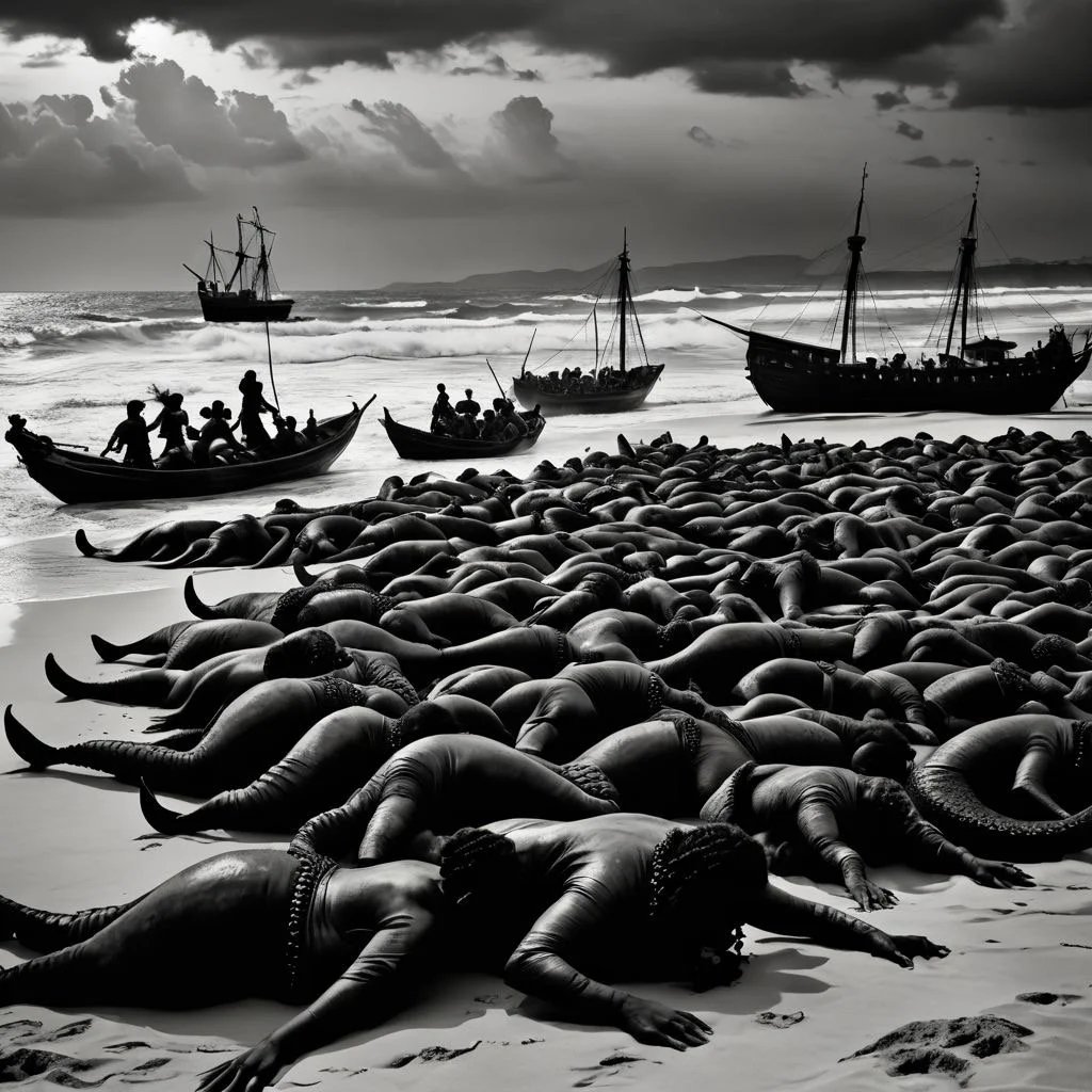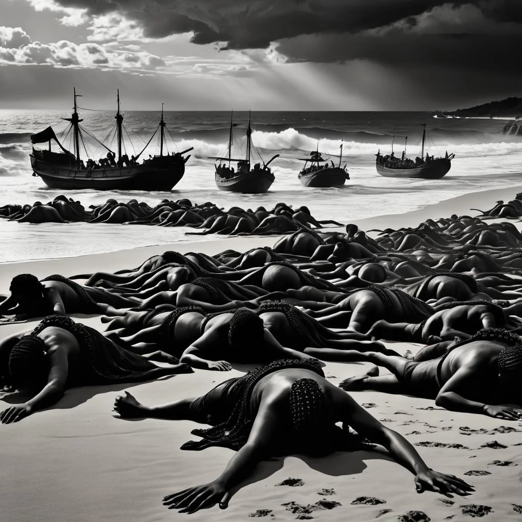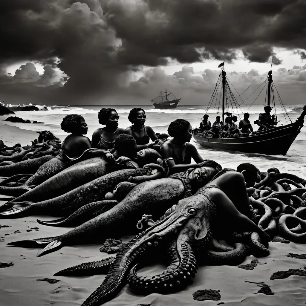 This series is inspired by the histories of African women in the Brazilian coasts who engineered forms of protest and anti-colonial black liberation. The women used botanical plants as forms of weapons to protect their ecosystems and maintain their cultural heritage. Combining the mythological stories of Drexyan underground mermaids (the transformation of murdered enslaved populations thrown at sea during the Slave Trade into underwater mermaids), the women water spirits live at sea and on land as the protectors of living ecosystems.